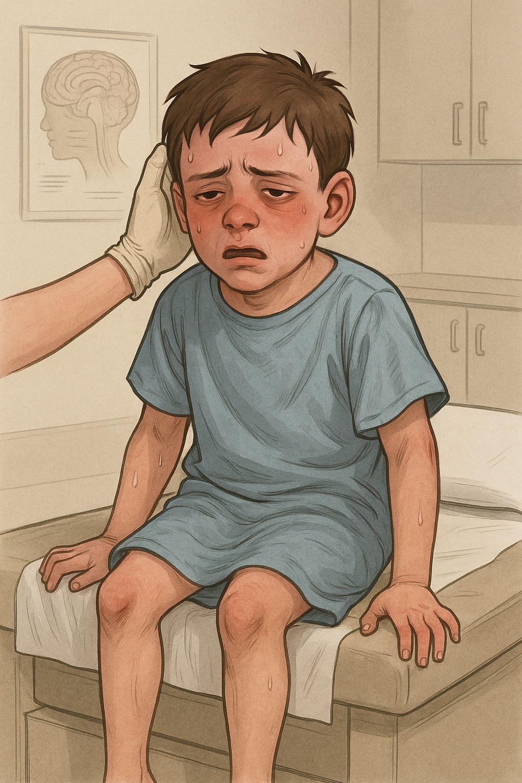• Seizures occur in approximately 20–35% of pediatric cases and may be the presenting feature.