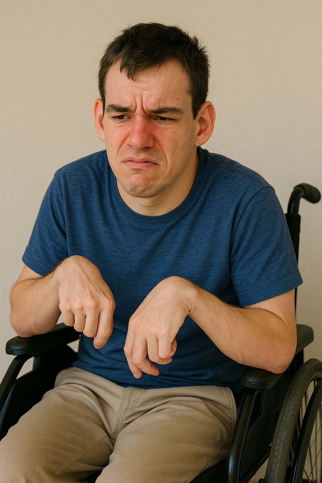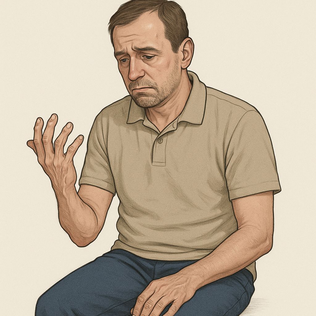 • A 22-year-old man presents with progressive tremors, slurred speech, and difficulty with coordination over the past year.