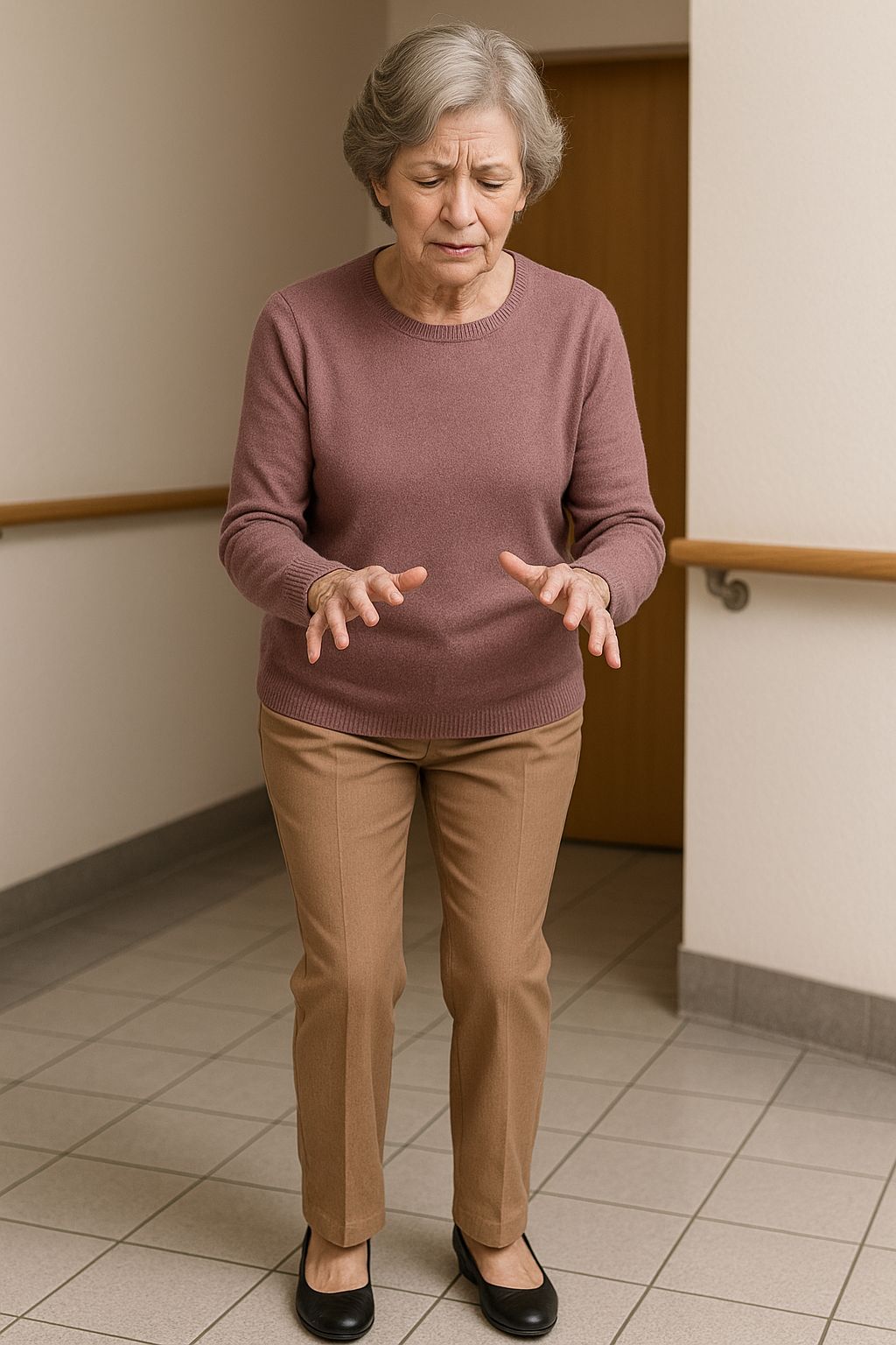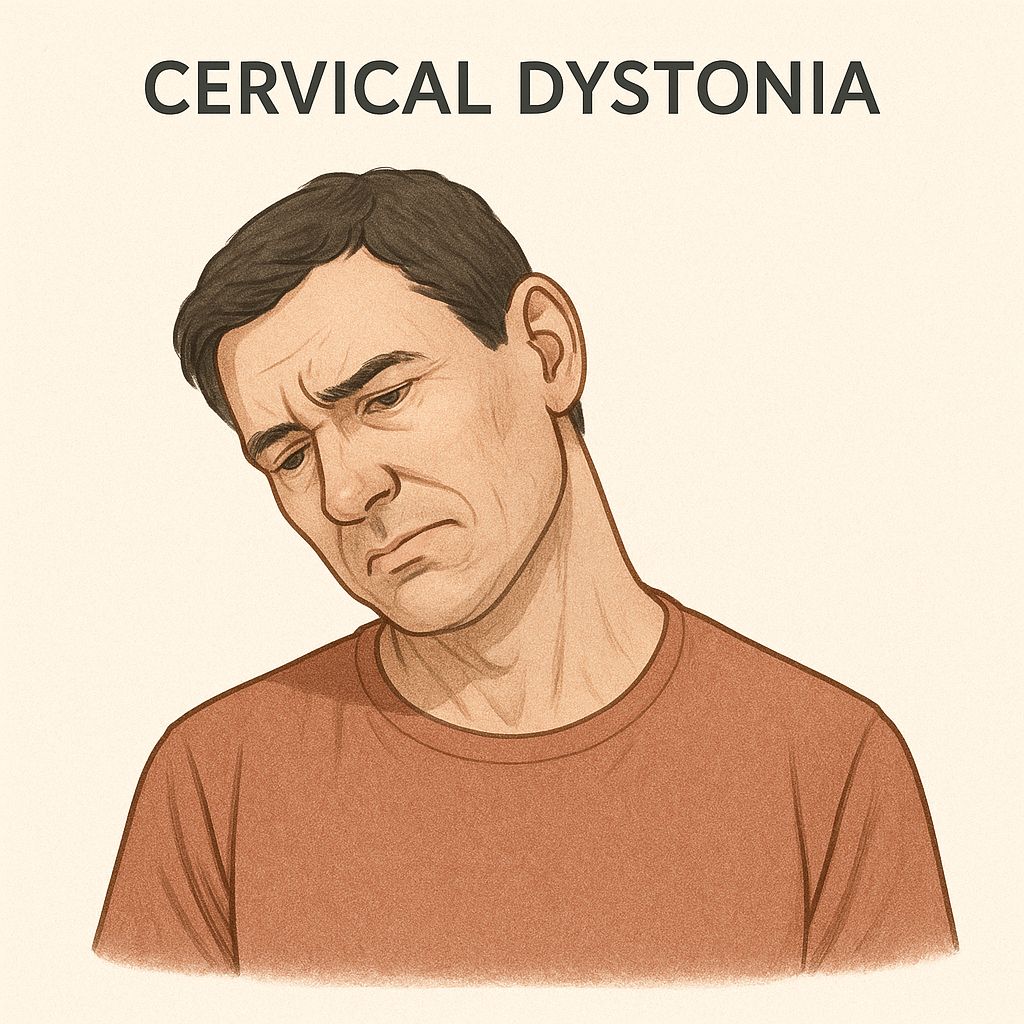 • Neurological examination reveals dysarthria, intention tremor, and mild dystonia.
