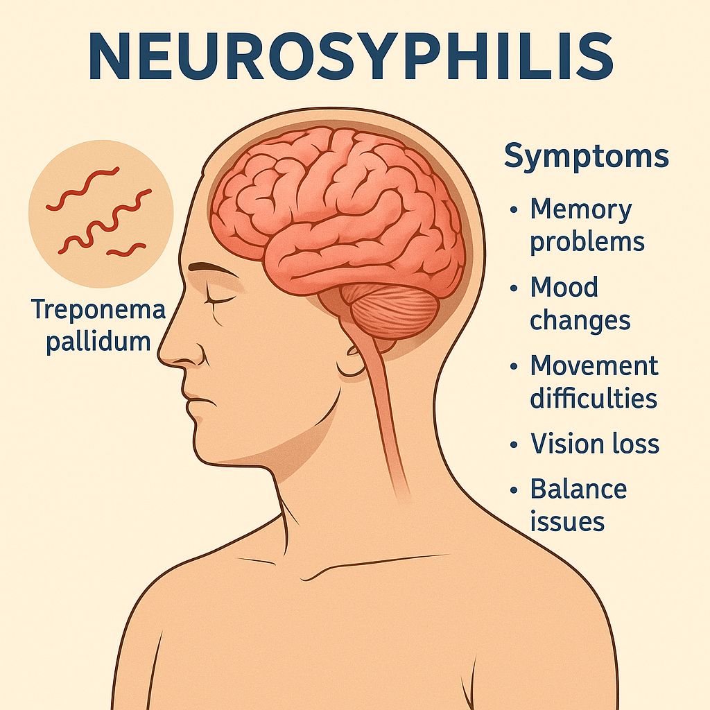 • Psychiatric manifestations may precede neurological signs and include depression, personality changes, or psychosis.