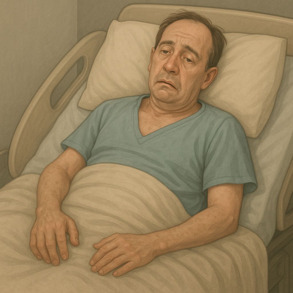 • He reports a preceding episode of diarrhea two weeks earlier but denies sensory loss or bowel/bladder symptoms.